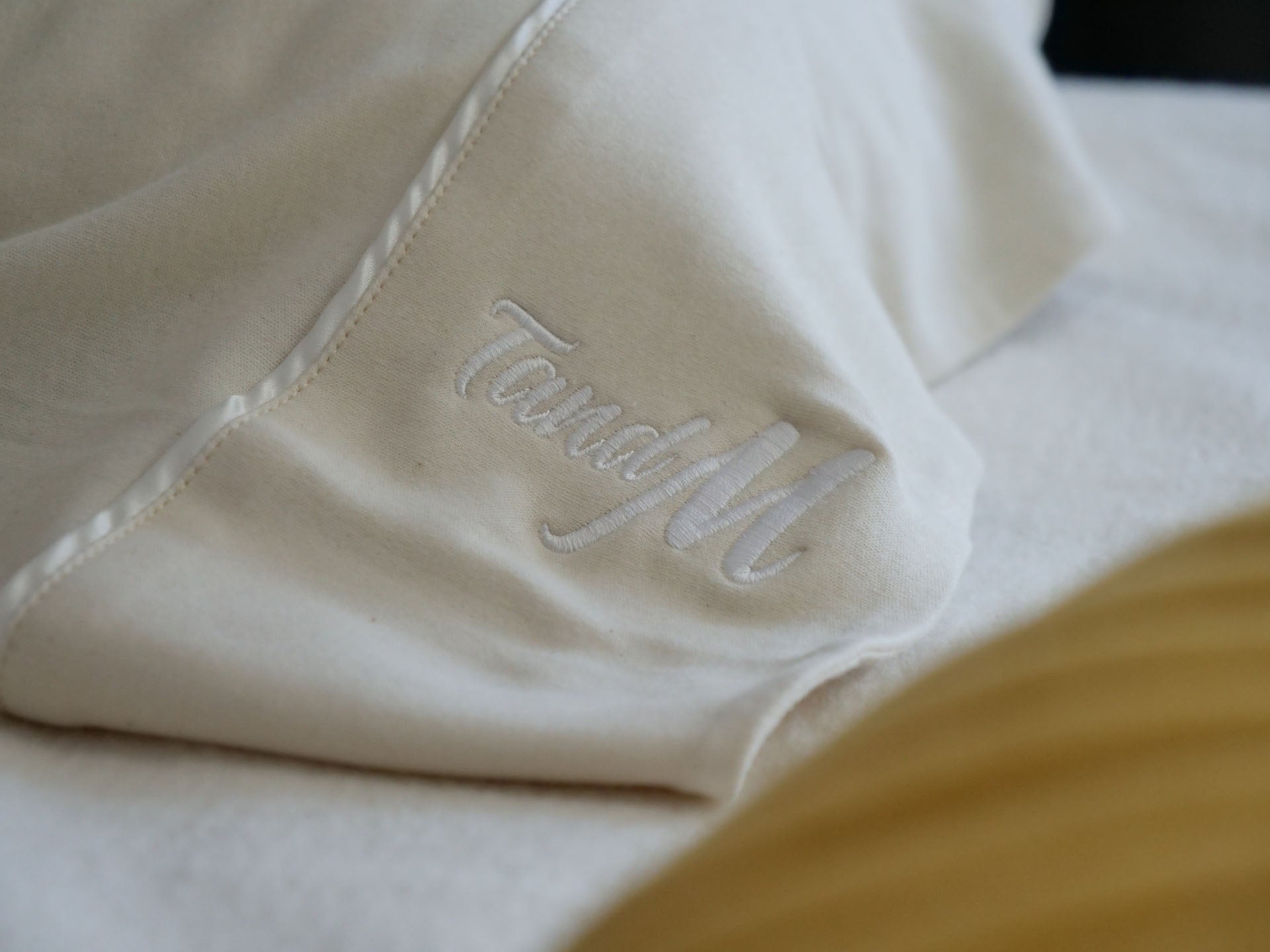L’ensemble de draps deux sections de TandM est composées de deux sections offrant des niveaux différents de chaleur. D’un côté, le « Knitted Velvet » procure chaleur et réconfort tandis que le côté de lin propose un espace frais et respirant.